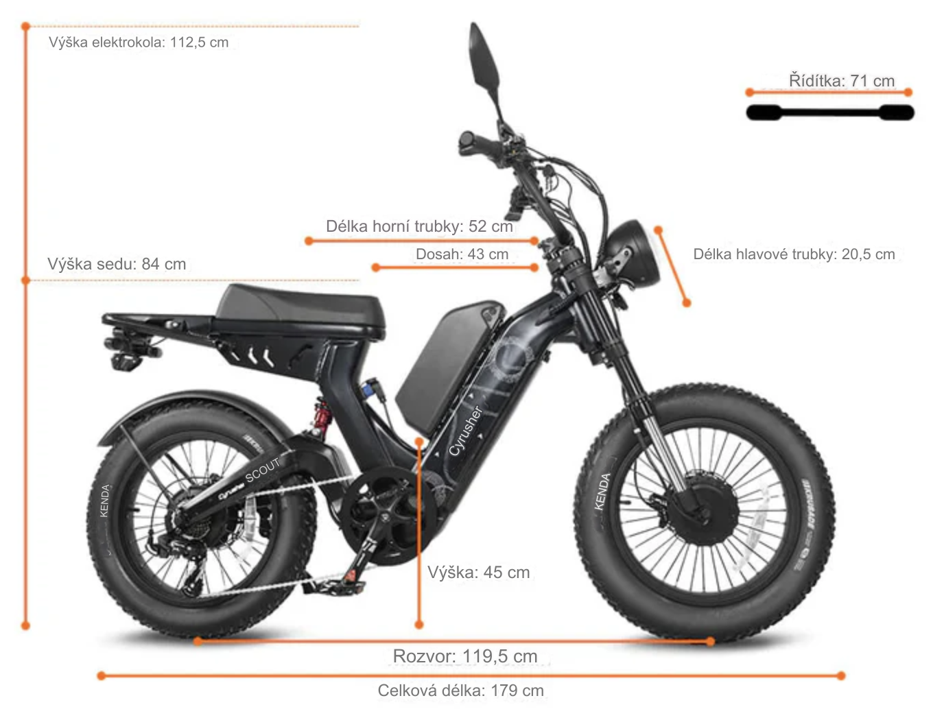 Cyrusher Scout celoodpružené elektrokolo Fatbike ve stylu mopedu do města i do terénu šedéSkladem74 990 Kč/ ks61 975 Kč bez DPH